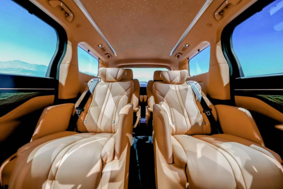面对不同用户的个性化需求,高山系列提供了4座和6座的改装方案。无论是寻求更为私密和奢华的商务接待,还是计划与家人共享温馨时光的私人定制,高山系列都能够满足。