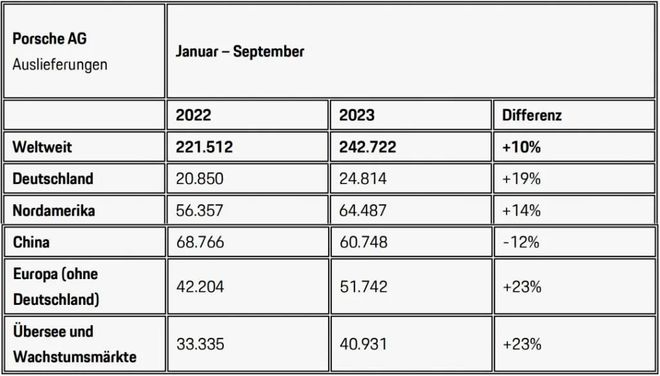 相比中国市场的下滑,欧洲市场却凸显出了强劲需求。今年前9个月,保时捷共在欧洲市场(除德国外)交付5.17万辆,同比增长23%;德国市场交付量为2.48万辆,同比增长19%。北美市场交付量为6.45万辆,同比增长14%;海外及新兴市场贡献了4.09万辆的交付量,同比增长同样达到了23%。